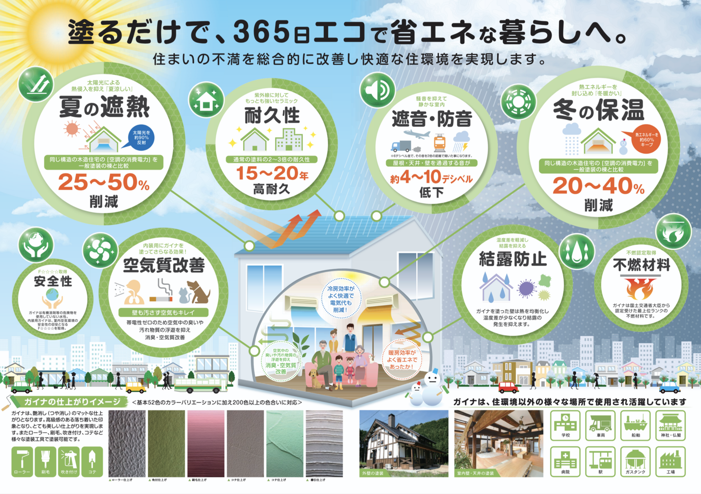 GAINAは「薄膜で熱の移動をコントロールする」ことを実 現化した断熱塗材として、日本のみならず、世界のさまざまな業界から注目されています。