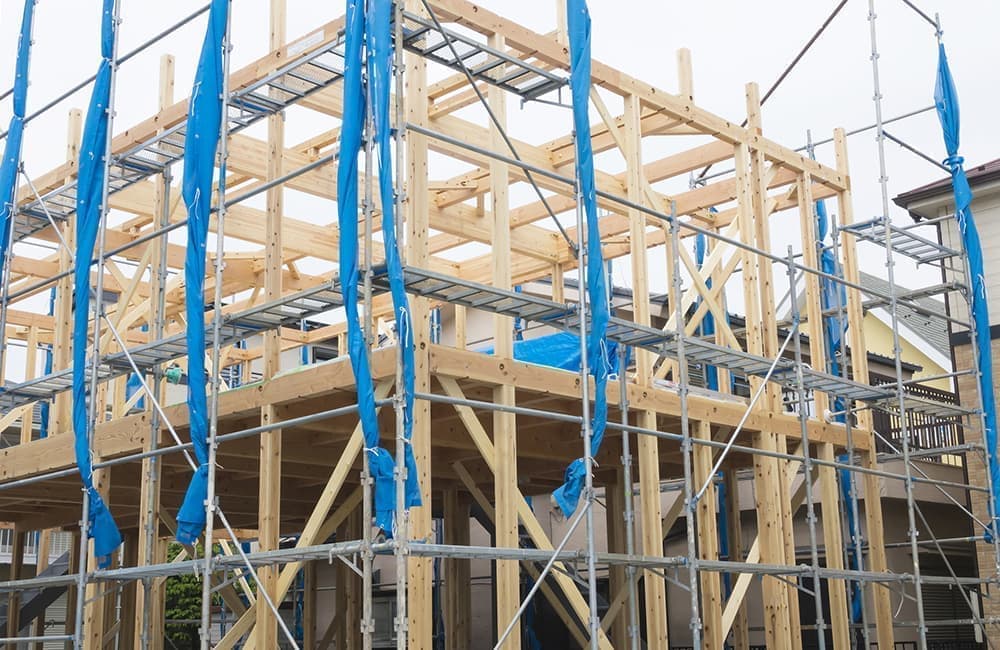 日本の木造住宅は、枠組壁工法(ツーバイフォー工法)と木造軸組工法の主に2つに分類されます。 枠組壁工法(ツーバイフォー工法)は、コンクリートの土台の上に、前述のとおり、ツーバイフォー材などの木材を組んだ枠組に構造用面材を接合してつくられた剛性の高い版で、壁や床などの六面で構造体をつくる工法です。