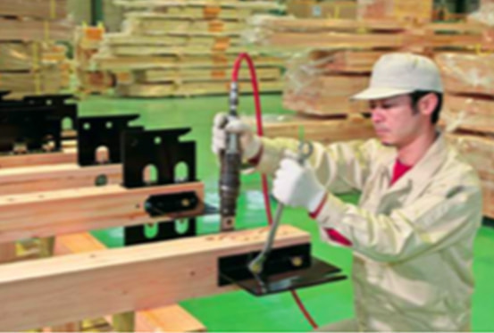 柱と梁を剛接合する木造ラーメン構法では絶対に緩まない金物接合が必要です。